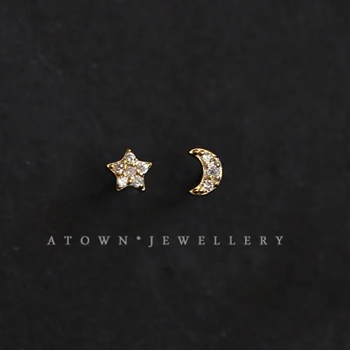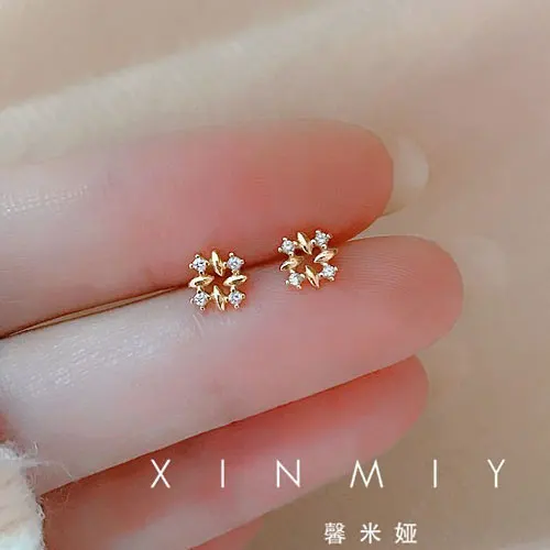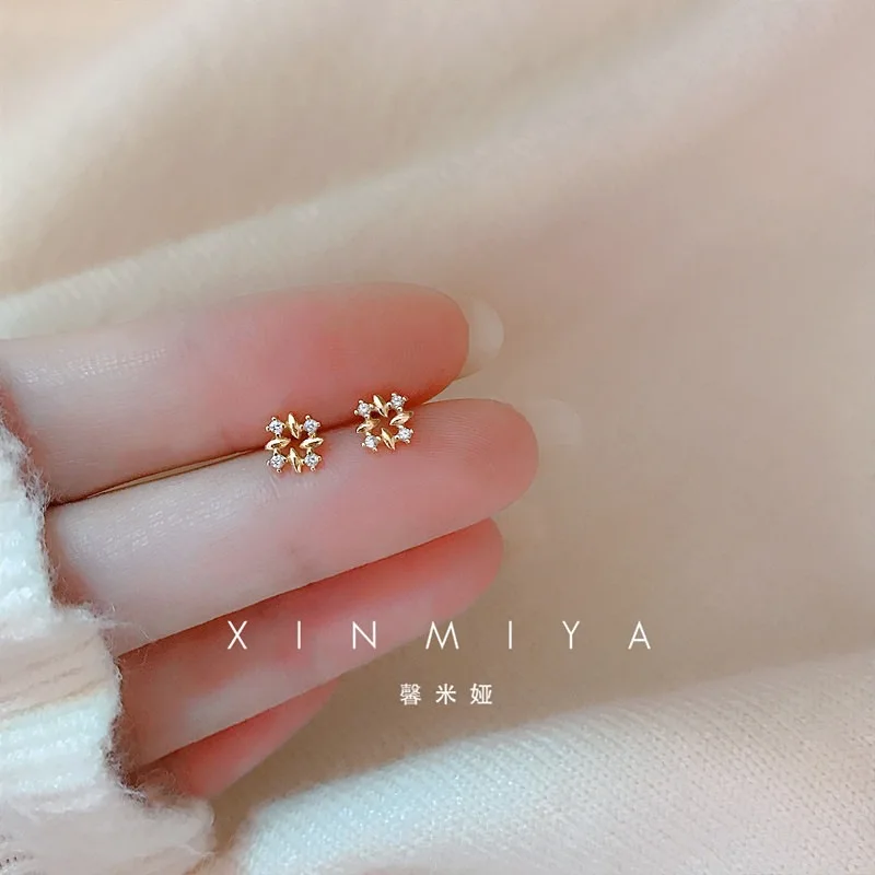 Маленькие серьги-гвоздики золотистого цвета со звездой и буквенным принтом в виде короны, милые циркониевые серьги для ногтей, мини-серьги с кристаллами и цветком, модные ювелирные изделия