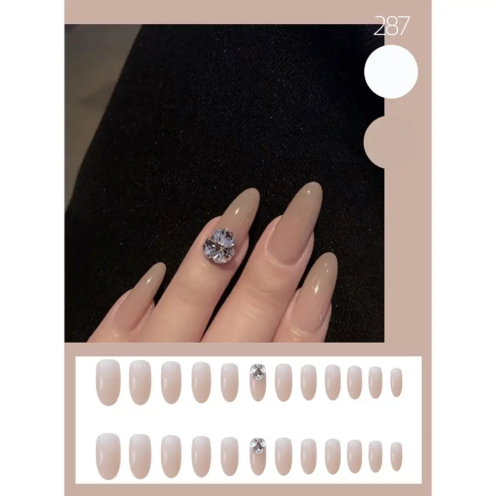 Накладные ногти с блестящим миндальным блеском, съемные стразы, накладные ногти с полным покрытием, накладные ногти, искусственный маникюр, 24 шт.коркор.