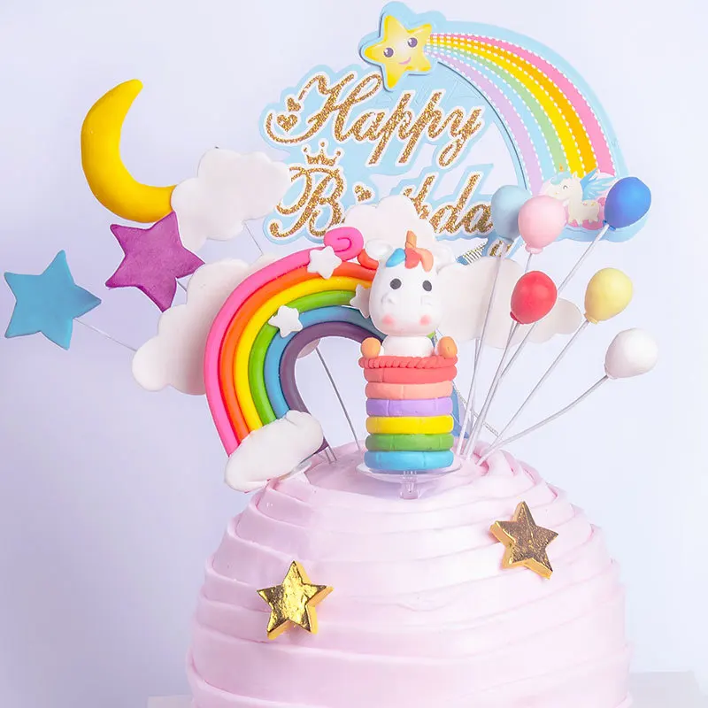Украшение для торта в виде единорога, радужная лошадь-качалка, лошадь-качалка для девочек и мальчиков, топпер для кексов на день рождения, украшение для вечеринки в честь Дня рождения детей