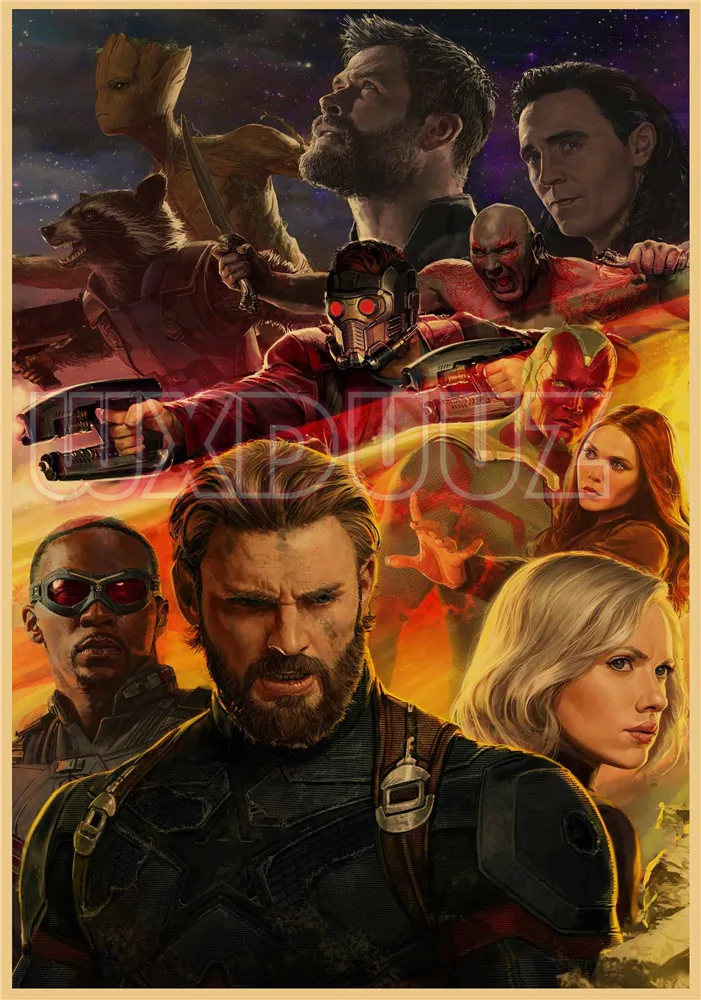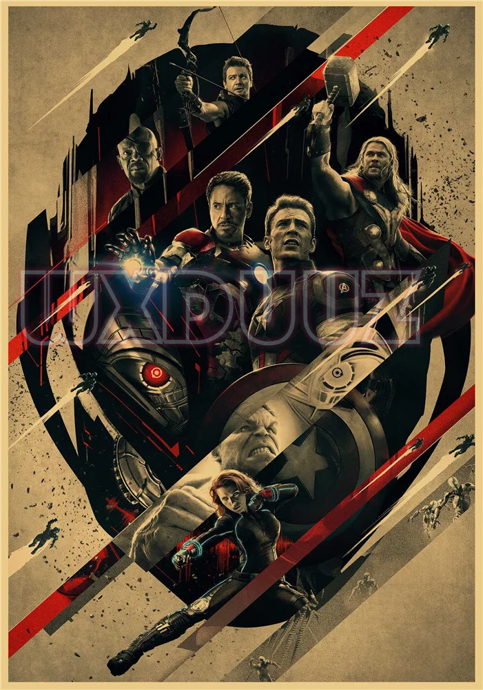 Постер серии Marvel с супергероями, декоративный Рисунок из крафт-б...