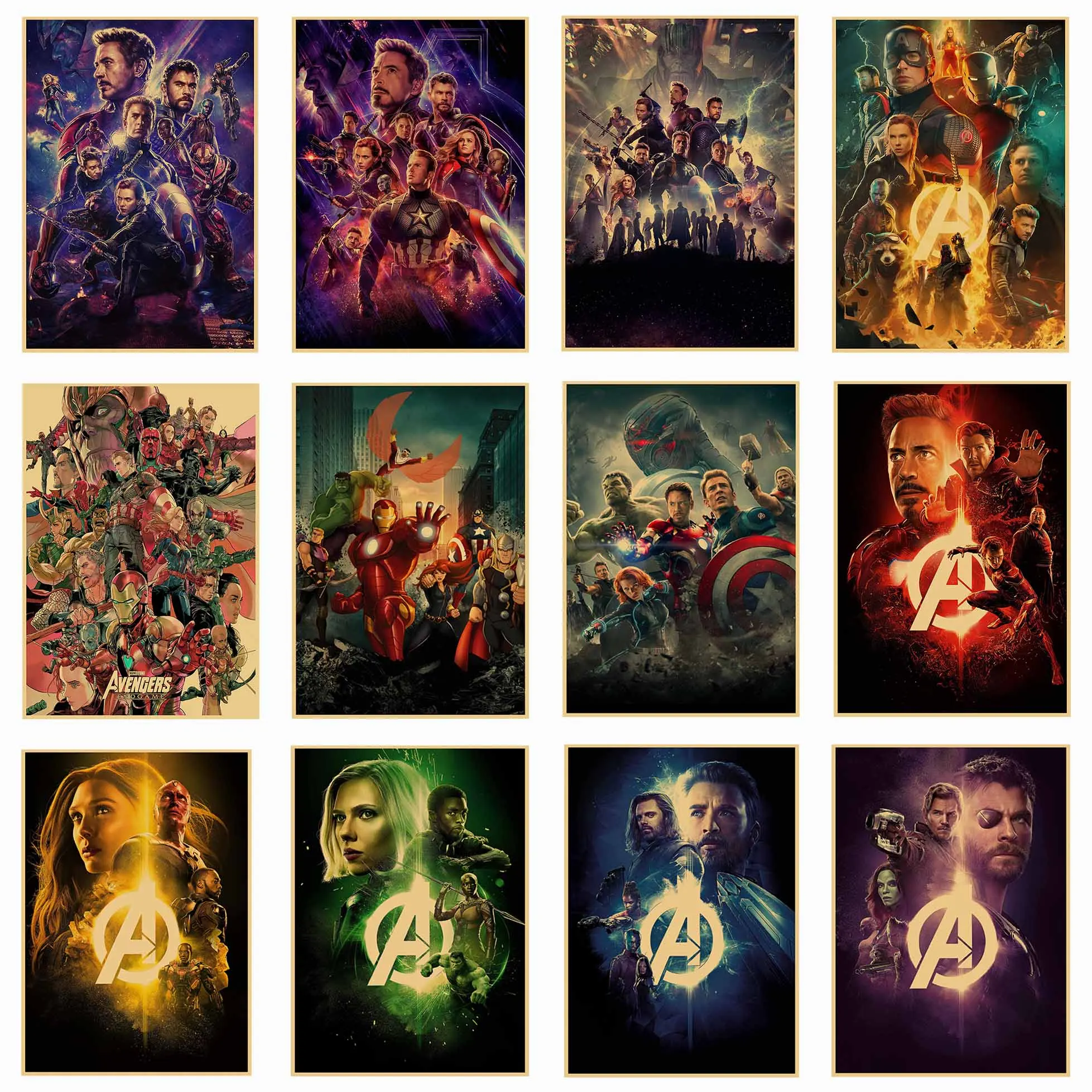 Серия супергероев Marvel, фильмы Мстители, ретро, постер из крафт-б...