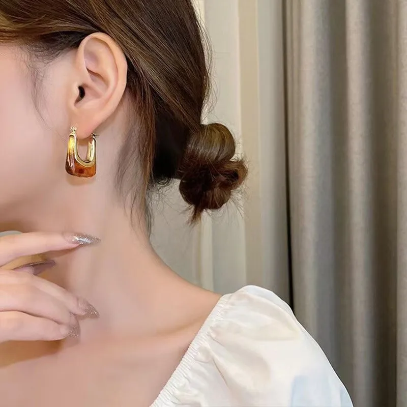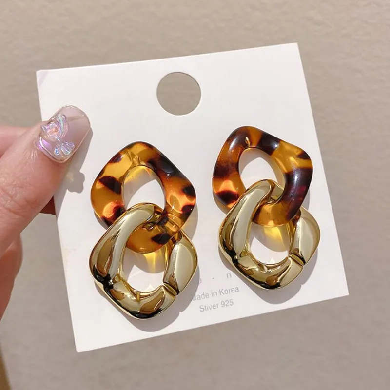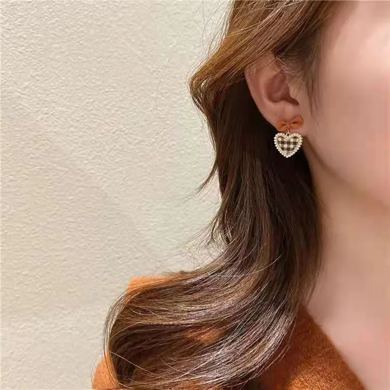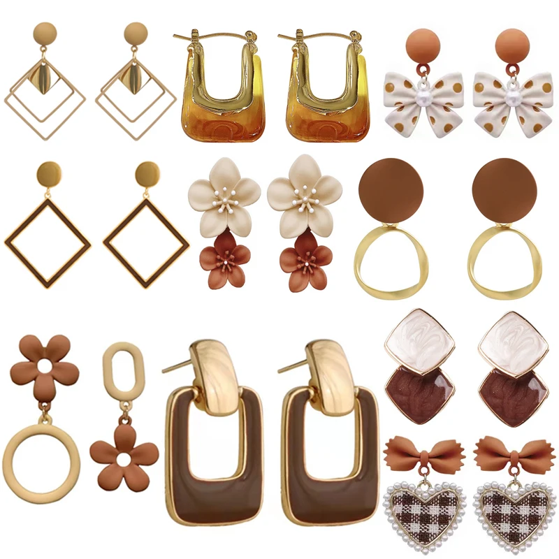 Кофейные геометрические серьги-подвески в форме цветка квадрата банта сердца корейские элегантные милые аксессуары для девочек коричневые серьги