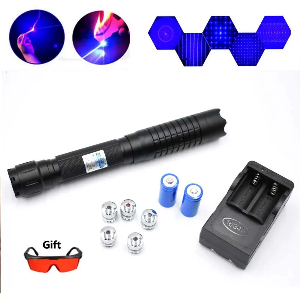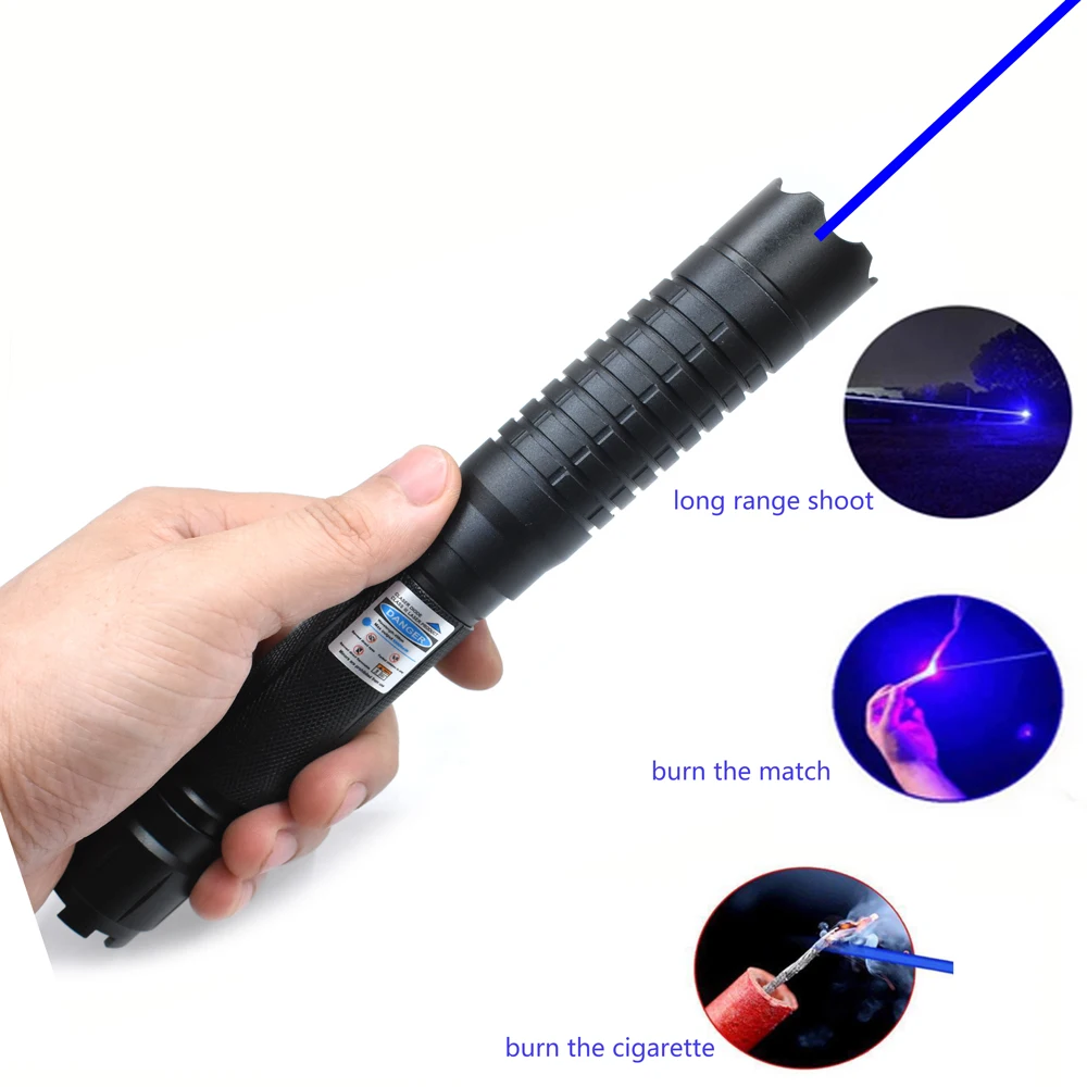 Сильный Мощный лазерный фонарь, 2 Вт, 50000 м, Синяя лазерная указка нм, мощный Лазерный фонарь для самообороны