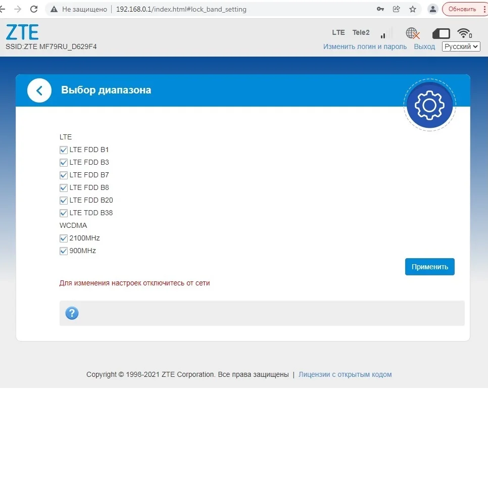 Модем изначально настроен "из коробки", т.е. в него достаточно вставить сим карту и подключить в USB порт. Имя Wi-Fi сети и пароль можно увидеть на наклейке модема под крышкой модема. ZTE 79RU можно подключать не только в USB порт компьютера или ноутбука, можно подключить в зарядку от смартфона (5В и не меньше 1А).