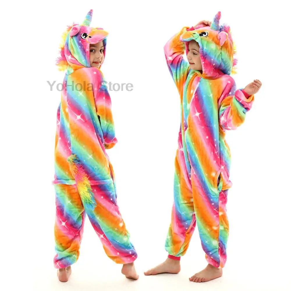 Милый детский Пижамный комбинезон Kigurumis с единорогом для девочек, Фланелевая Пижама унисекс, одежда для сна в стиле аниме, домашняя одежда на молнии для косплея, зима
