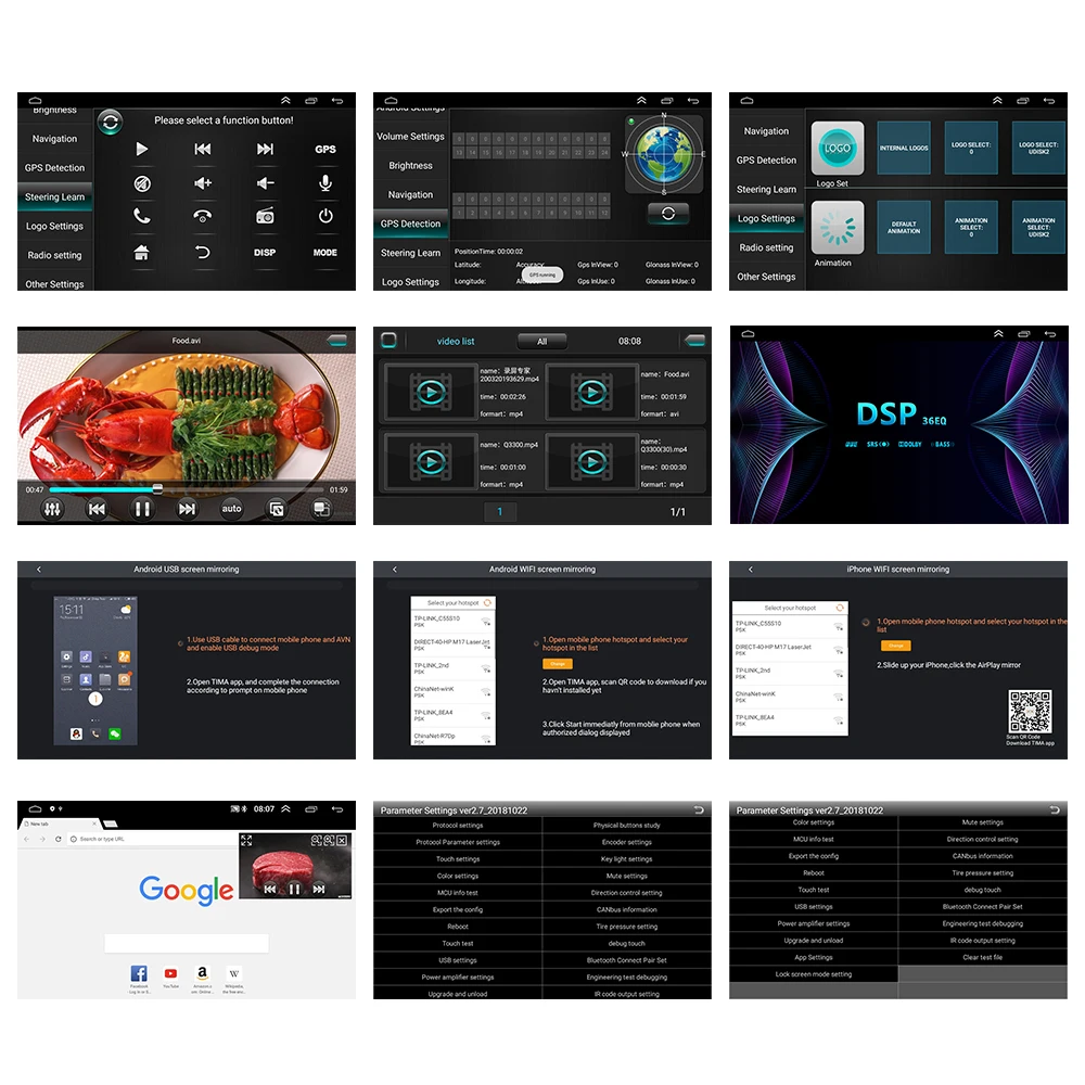 ● DSP: автомобиля dsp настройка программного обеспечения, используя DSP технологии настройки, вы можете настроить частоту, AE, 36-полосным эквалайзером, Доставка в течение 10-полосным эквалайзером, звук выбора типа на приложении (IR-CUT, компенсируйте отсутствие оригинальных автомобильных динамиков и получите лучшее качество звука без потерь. Наслаждайтесь музыкой на автомобиле-это первый выбор для фанатов, которые преследуют высокое качество звука.