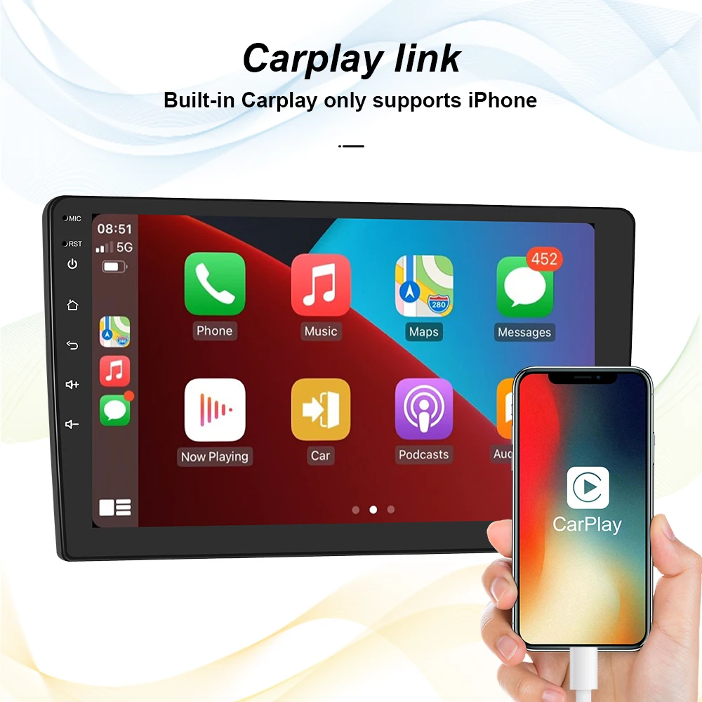 ● Беспроводной Carplay: вы можете выбрать проводное соединение или Беспроводной подключение к carplay, подключаться к Apple мобильный телефон, мобильный телефон адресная книга, электронная почта, уведомления, map навигация, прослушивания музыки, просмотра видео и другую информацию, И реализовать Голосовое управление.