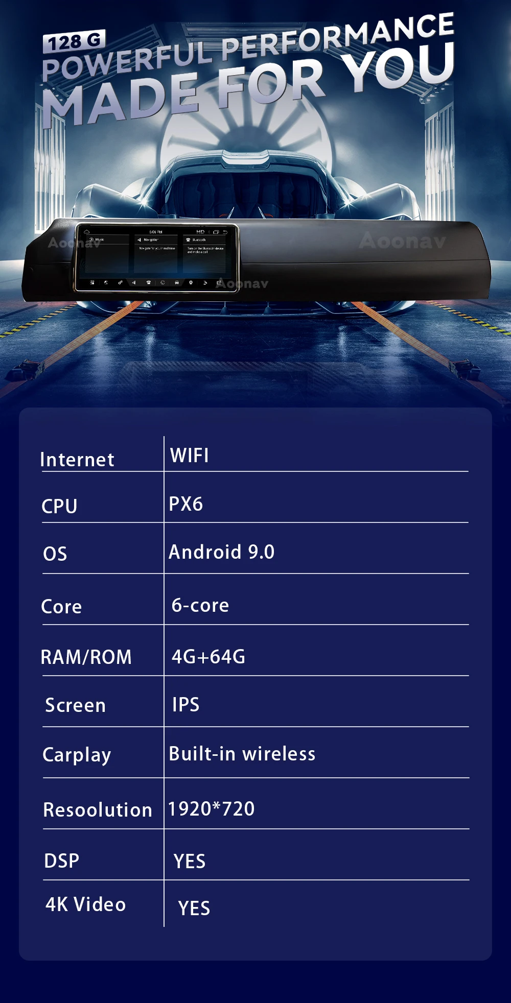 Системы: встроенный беспроводной CarPlay, 6 ядро, px6 ,RK3399, 12,3 дюймов IPS сенсорный Экран: