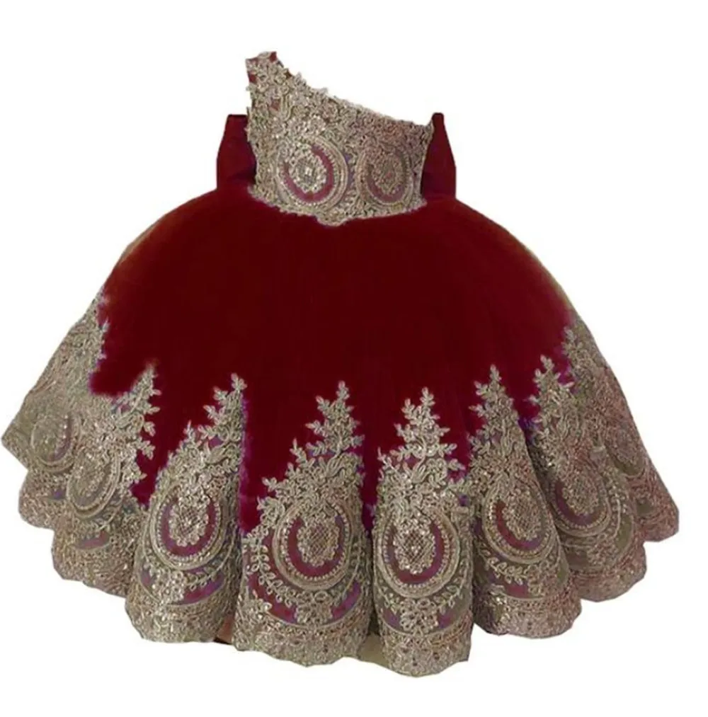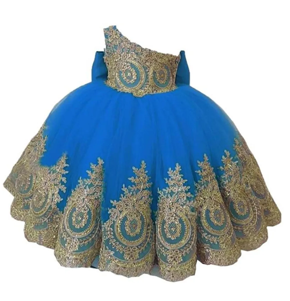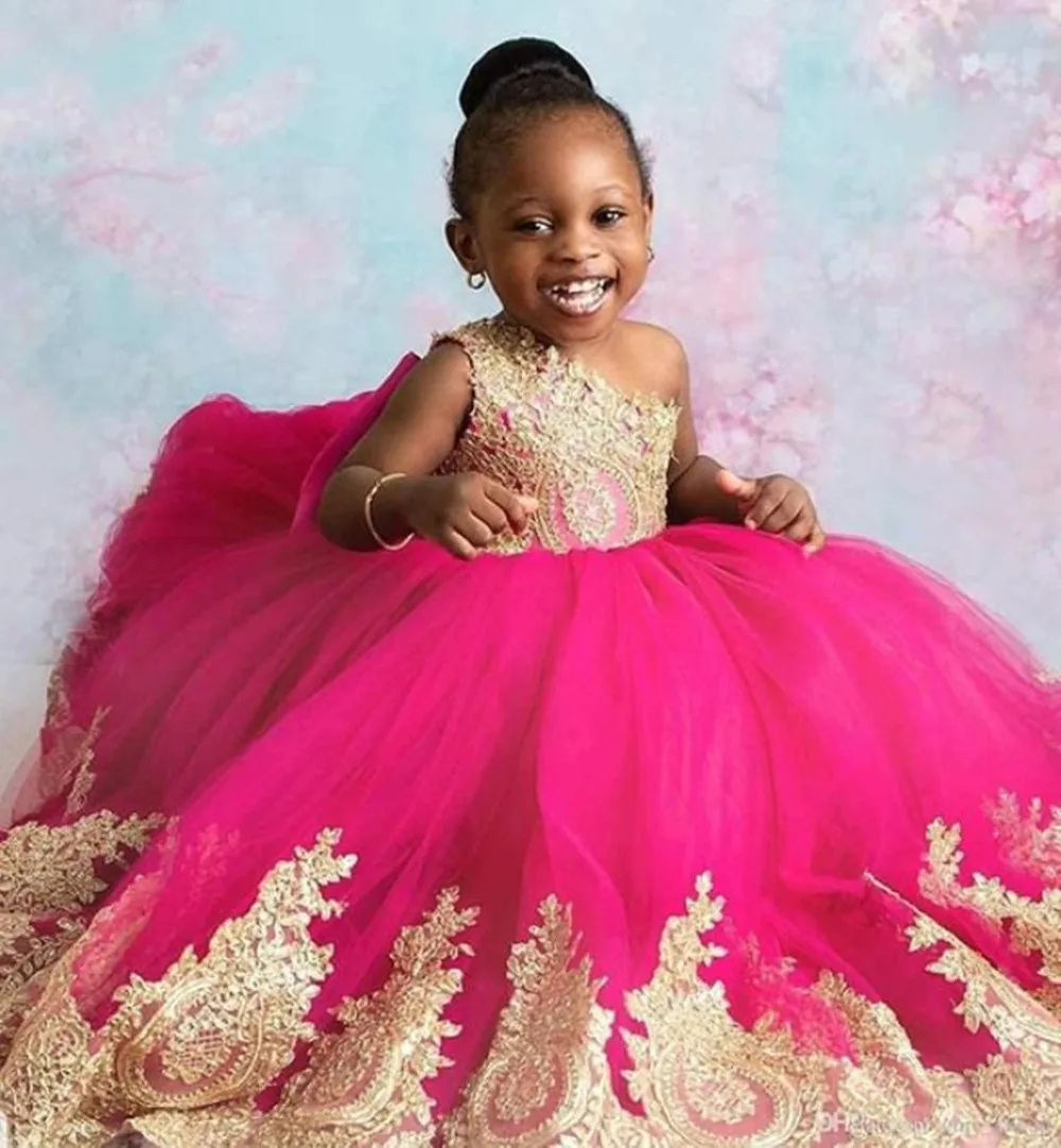 Платья для девочек на одно плечо, розово-красный цветок с золотым кружевом, африканские платья для девочек с бантом, Длинные тюлевые платья для дня рождения для девочек