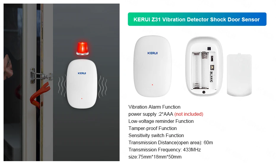 1.KERUI W181 использует только 2G sim-карты (850/900/1800/1900 МГц), и друзья из США и Австралии, пожалуйста, свяжитесь с нами.2. KERUI W18 работает только с частотой 2,4G WIFI.3. Батареи не включены из-за авиационных ограниченийP831 PIR : CR2450 батарея или Dc5v (не включает)D025 датчик двери: 23V 12A батарея