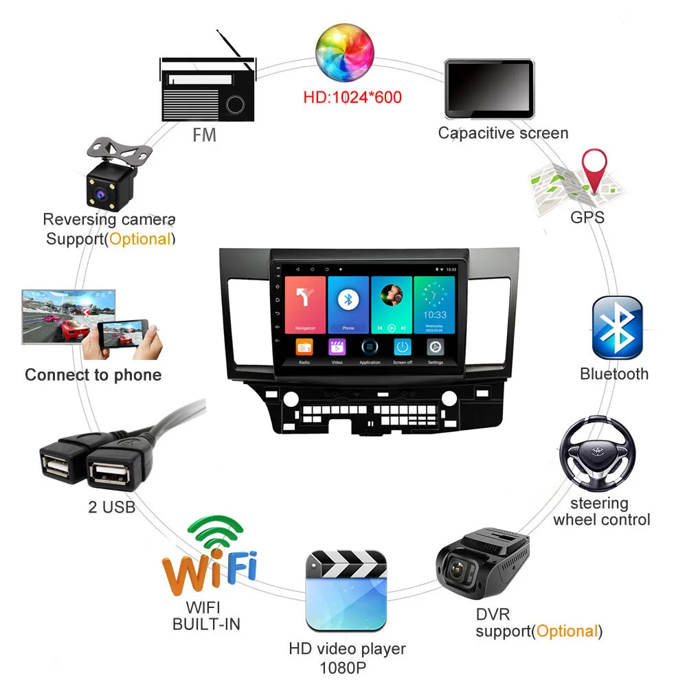 2 Din Android 4G Carplay 10,1 дюймов автомобильное радио для Mitsubishi Lancer 2008-2015 Bluetooth Wifi GPS мультимедийный плеер