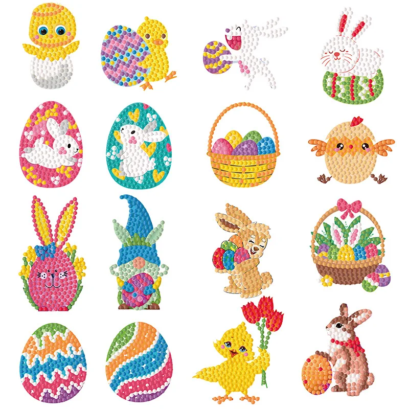 Алмазная живопись сделай сам, пасхальные наклейки для детей, Мультя...