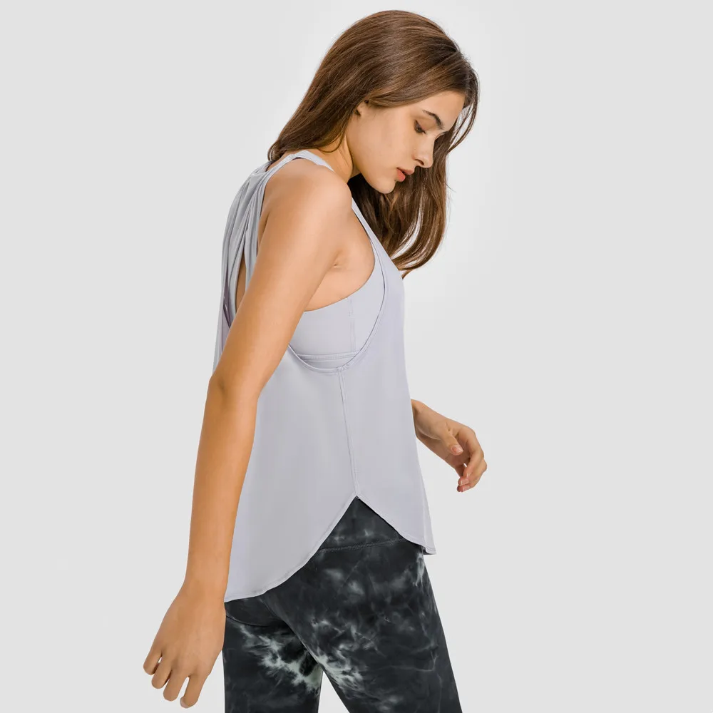 2 в 1, легкая спортивная майка с открытой спиной и бюстгальтером