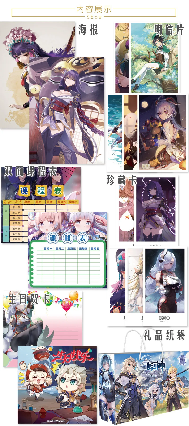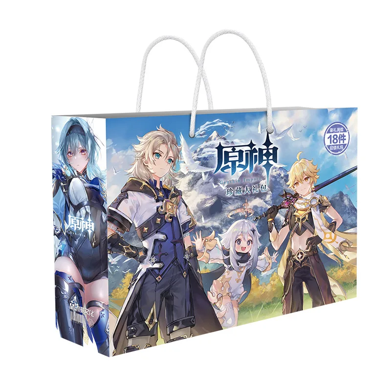 Аниме удачный Подарочный пакет Genshin Impact, игрушка с Hutao, открытка Ganyu, Постер, значок, наклейки Eula, Albedo, закладки, подарки на день рождения