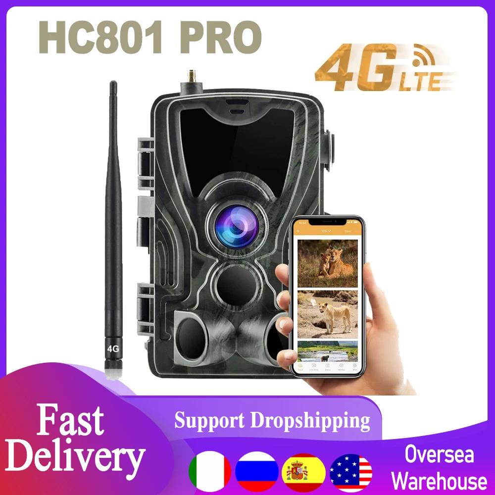 Профессиональная охотничья камера HC801, прямая трансляция, видео 4K, облачное приложение, 4G, охота на диких животных, беспроводная камера 30 мп, фотоловушка