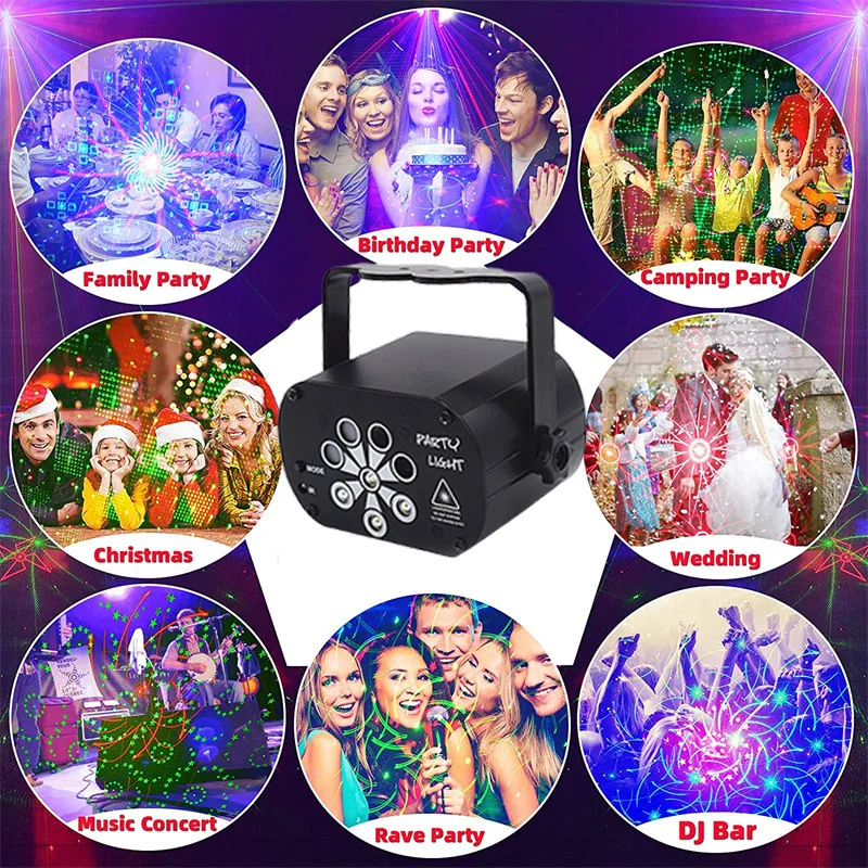 Пульт дистанционного управления и Звуковое управление дискотечный светильник: сверхчувствительный приемник позволяет удаленно управлять устройством, легко регулировать вкл/выкл, режим, цвет фона, настройки времени, режим работы (Автоматическое/Стробоскоп/Звуковое управление). Наш лазерный светильник оснащен усовершенствованным встроенным звуковым датчиком, который может быть изменен свободно в соответствии с музыкальным ритмом, создавая DJ disco и сценический светильник ing effects. Наслаждайтесь!