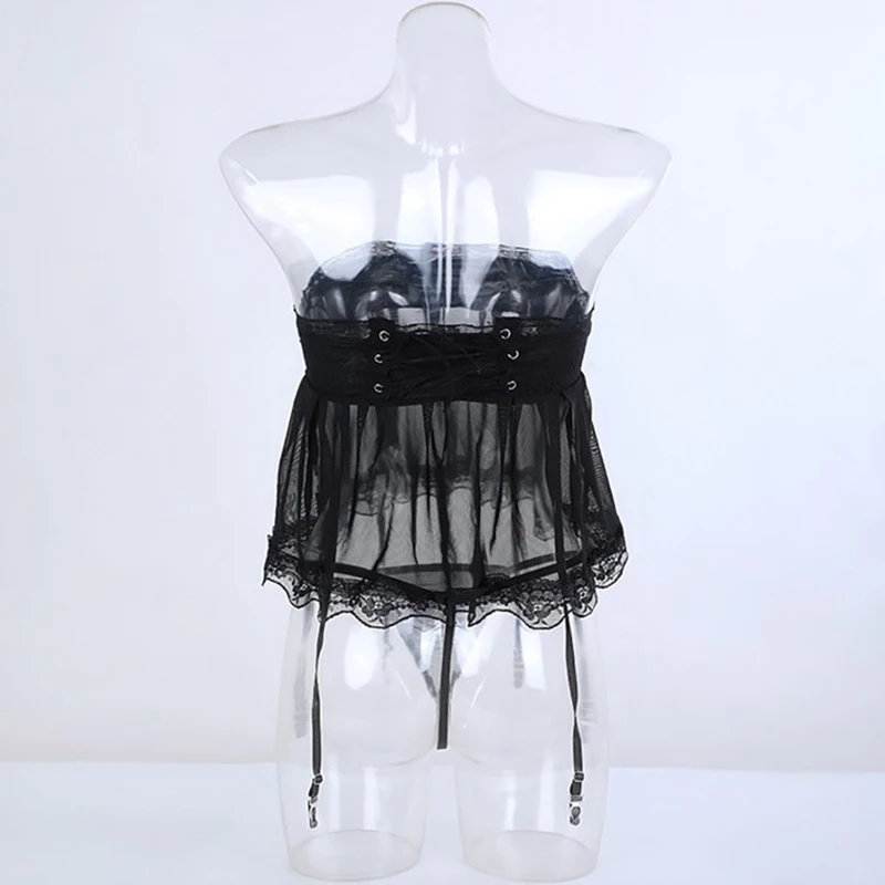 Женское черное нижнее белье с подвязками, кружевная сетчатая юбка с...