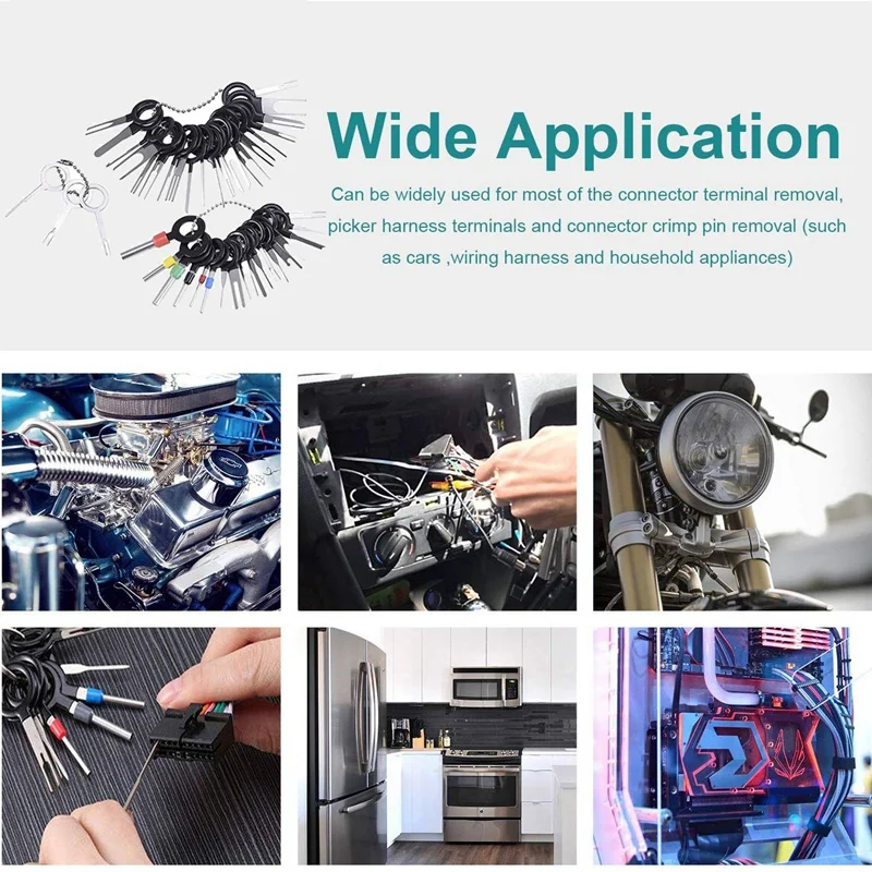 Материал: изготовлен из нержавеющей стали + пластика. Гибкий, устойчивый и прочный.Функция: они могут расслабить удаление клеммных проводов из соединителя проводов и добавить новый провод, который не вызовет никаких дэ.Совместимость: этот набор инструментов является универсальным инструментом для большинства разъемов и используется в большинстве автомобильных, мотоциклетных и других электронных устройств (например, бытовой техники).Удобно: не нужно открывать клеммы, только нажимать и тянуть клеммы. Это обеспечивает дополнительное плечо, вы можете легко вынуть провод. Вы можете вручную изменить ширину штифта, и он может быть восстановлен первоначальную форму без осыпания.Цвет: черныйМатериал: нержавеющая сталь + пластикПосылка:20 * шт двойной контактный экстрактор13 * шт одноконтактный экстрактор6 * шт корпус инструмент1 * шт Трехконтактный экстрактор1 * шт крючок.