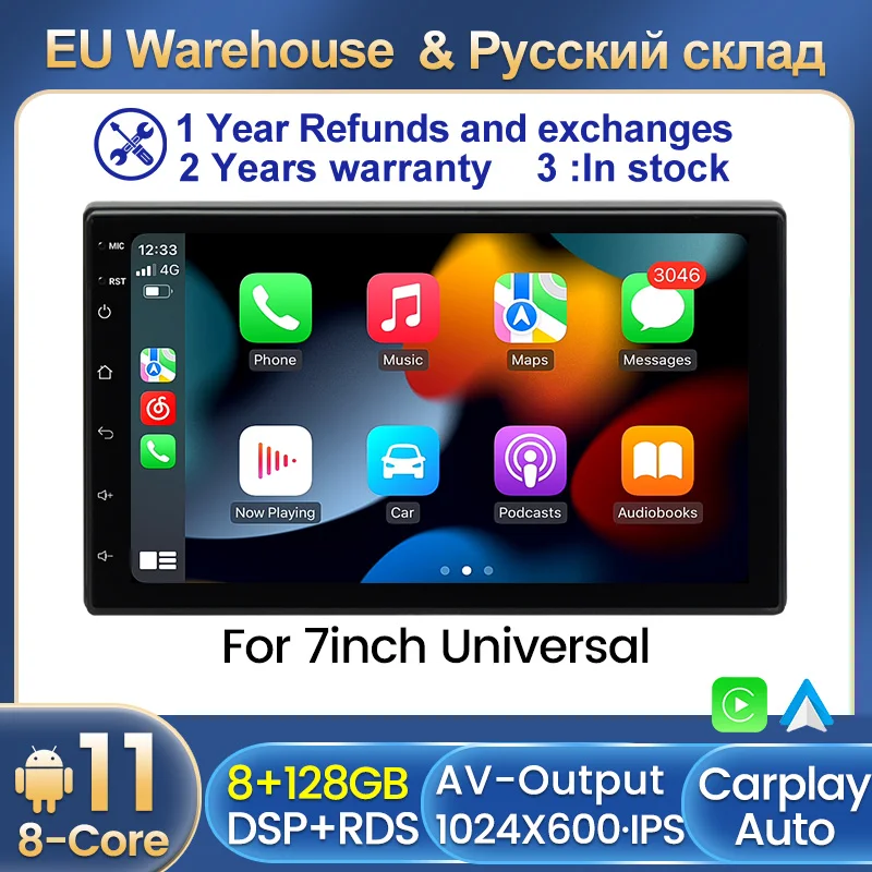 Автомобильная Мультимедийная система, плеер на Android 11, с 7-дюймовым экраном, GPS, для Toyota, Volkswagen, Nissan, Hyundai, Kia, Suzuki, LADA, Ford, типоразмер 2DIN