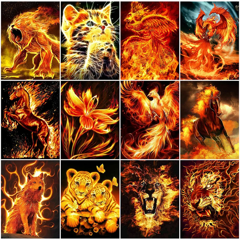 Алмазная вышивка HUACAN лев тигр алмазная живопись кот Феникс картина Стразы Алмазная мозаика лошадь камни в форме ромба ручной работы хобби