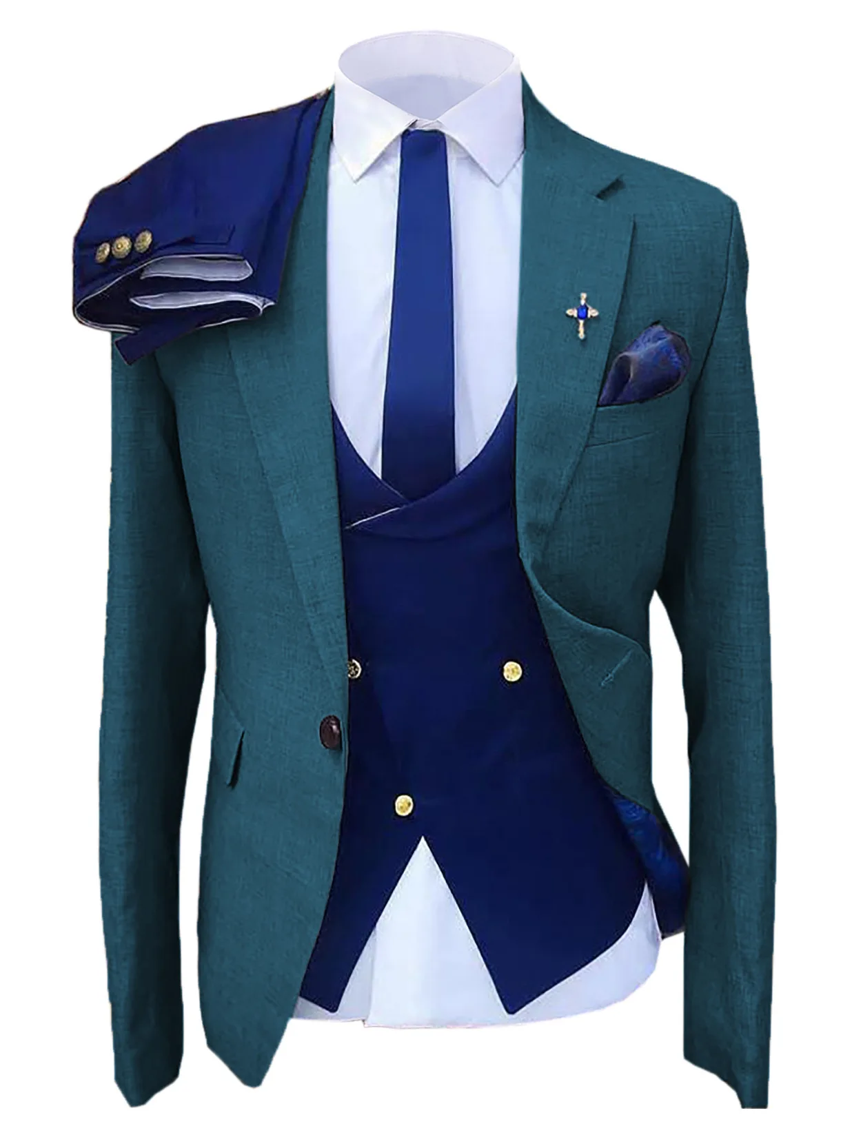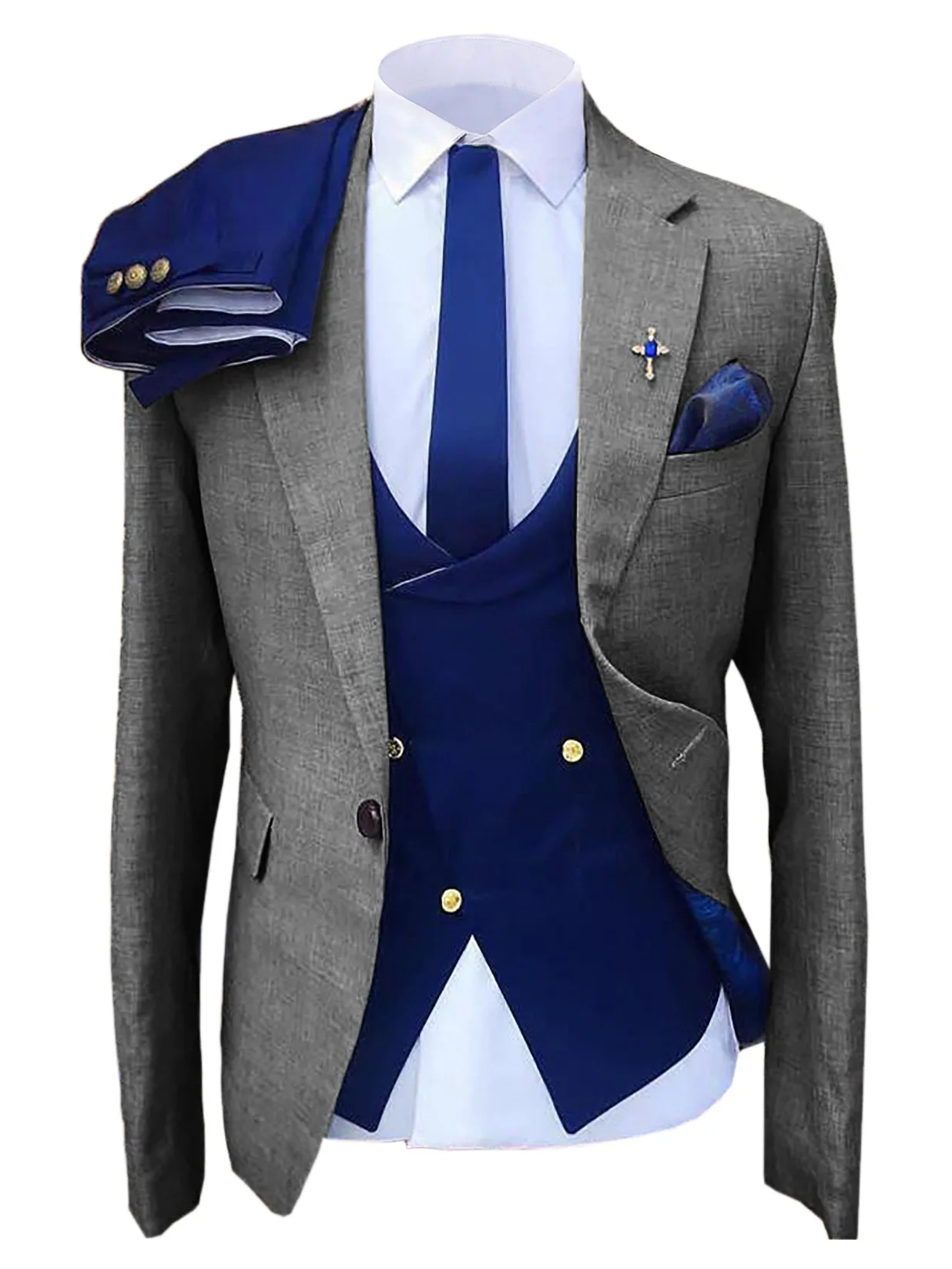 Мужской деловой костюм из 3 предметов, облегающий блейзер с вырезом...