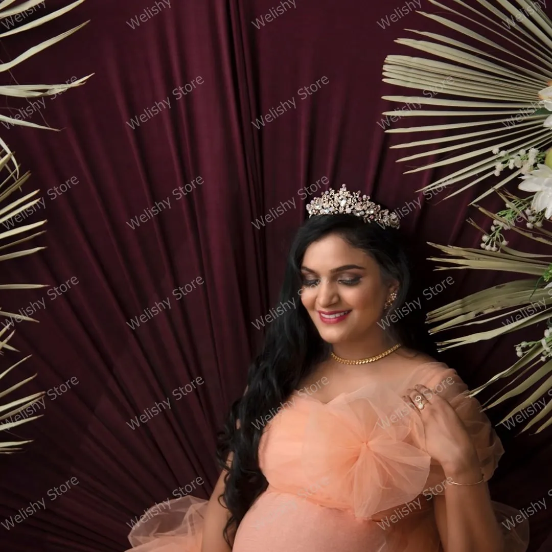 Платье для беременных из тюля, с открытыми плечами, длинными рукава...