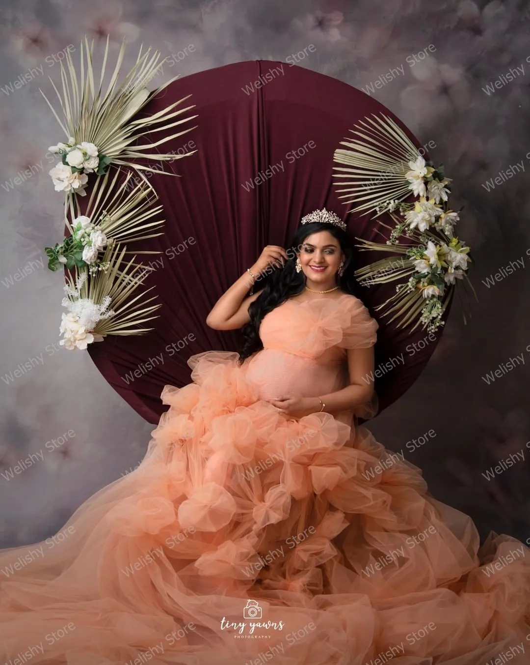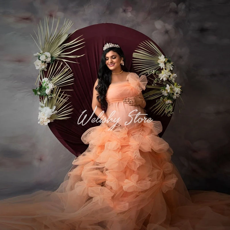 Милое розовое Тюлевое платье с оборками, длинное платье для беремен...