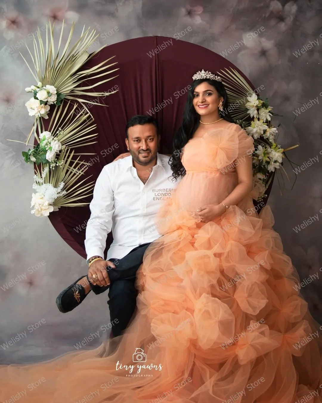 Очаровательные фатиновые платья фуксии для беременных для фотосъемк...
