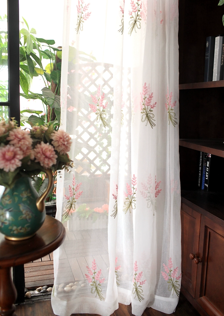 Розовые тюлевые занавески с цветочной вышивкой на заказ, для спальни, римских экранов, белая прозрачная занавеска для гостиной, занавеска из вуали