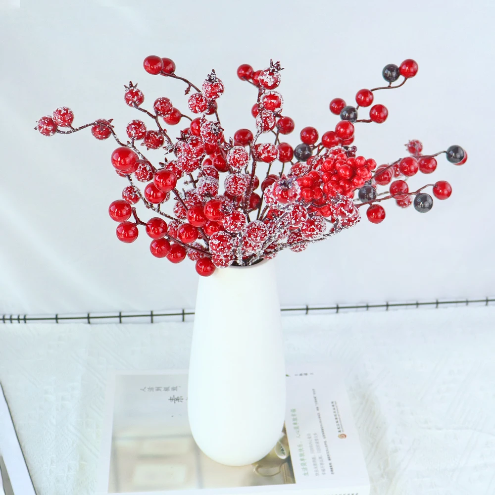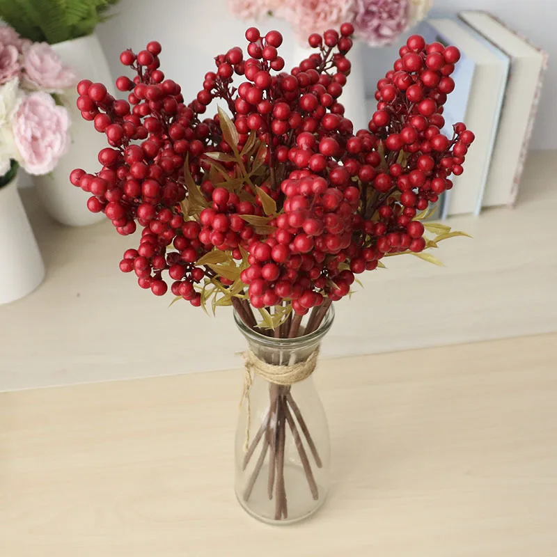 Искусственные красные ягоды, растения, декор для вечерние ла, Рождественский цветок, ветка, свадебный букет сделай сам, пузырьки, искусственная сосна