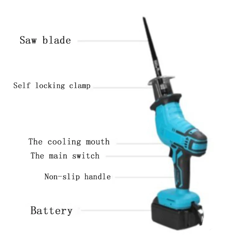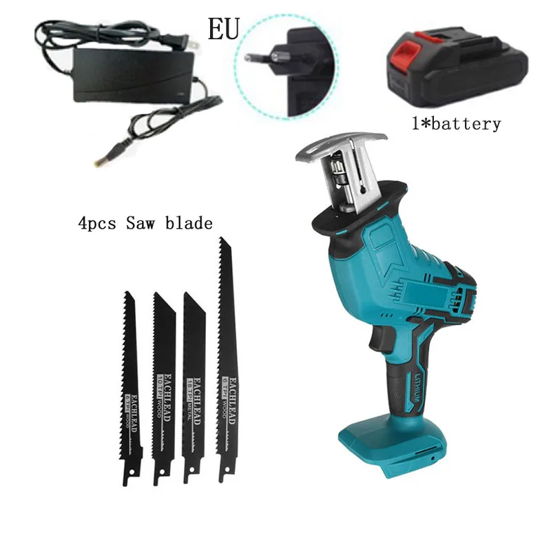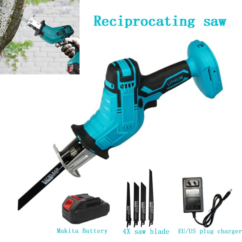 Беспроводная сабельная пила Регулируемая скорость портативная электрическая пила сабельная пила металлический инструмент для резки дереваСпецификация:Цвет: синийТип батареи: подходит для аккумулятора Makita 21V!Число оборотов холостого хода: 0-2000 об./мин.Регулируемая скоростьДлина хода: 10 ммМеталлНоминальная мощность: 1000 ВтГлубина резки: 100 мм глубина резки пластика: 100 ммУпаковка:1 x сабельная пила (батарея в комплект не входит!)Или 1 сабельная пила + 4 пильного дискаИли 1 сабельная пила + 4 пильных диска + одна батарея и одно зарядное устройство● Высокая мощность.● Электрический тормоз.● Переменная скорость.● Замена лезвий без инструментов.● Эргономичная ручка.● Триггер с рычагом блокировки.● Новый Разработанный механизм является более эффективным.