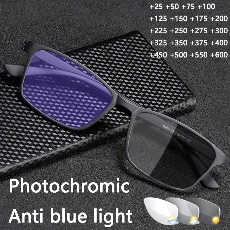 Мужские очки для чтения с переходом фотохромные анти-синий светильник для дальнозоркости модные женские очки против усталости компьютерные очки + 25 Какие фотохромные линзы?