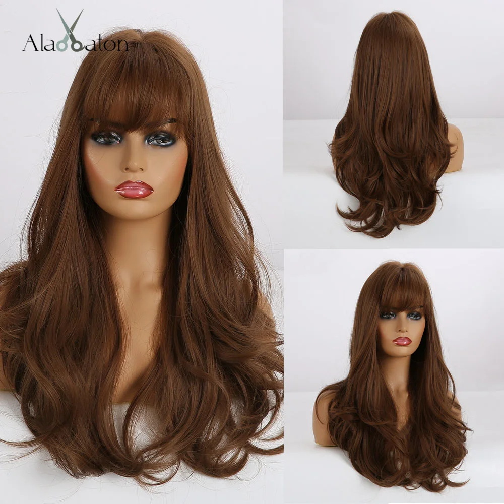 Парики ALAN EATON для женщин средней длины, синтетические волнистые, с челкой, натуральные, темно-коричневые, из термостойкого волокна, повседневные
