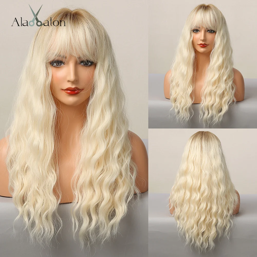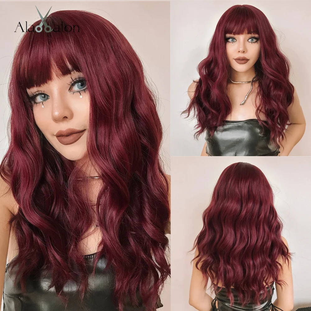 ALAN EATON, средняя длина, водная волна, синтетические парики с челкой, натуральные, темно-коричневые, повседневные волосы, парики для женщин, Термостойкое волокно