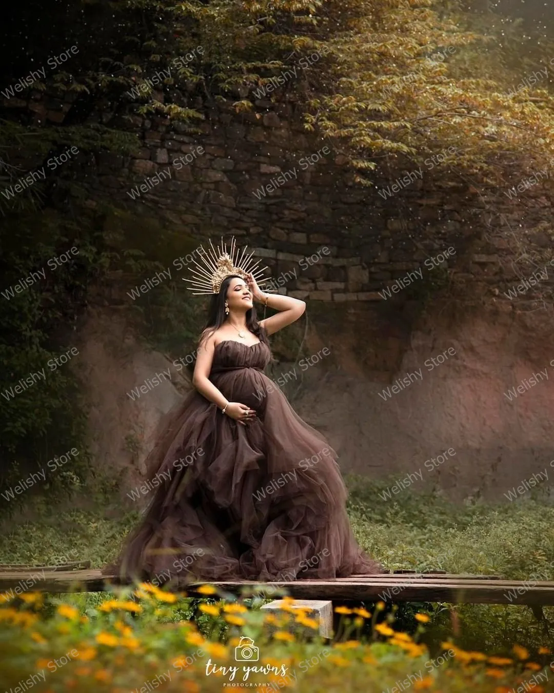 Современное коричневое платье для беременных женщин, ТРАПЕЦИЕВИДНОЕ драпированное платье без бретелек