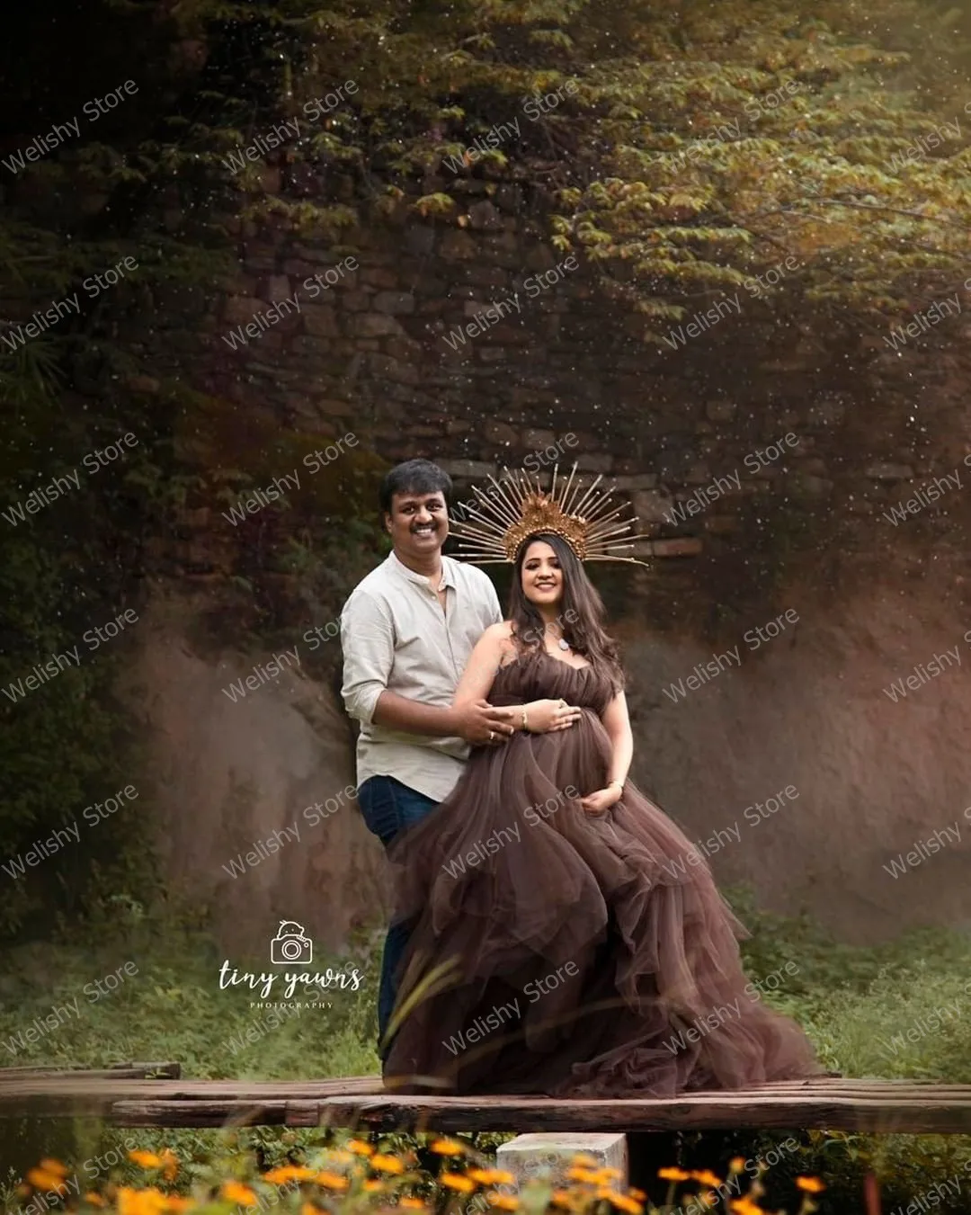 Блестящие тюлевые платья цвета шампанского с блестками для беременн...