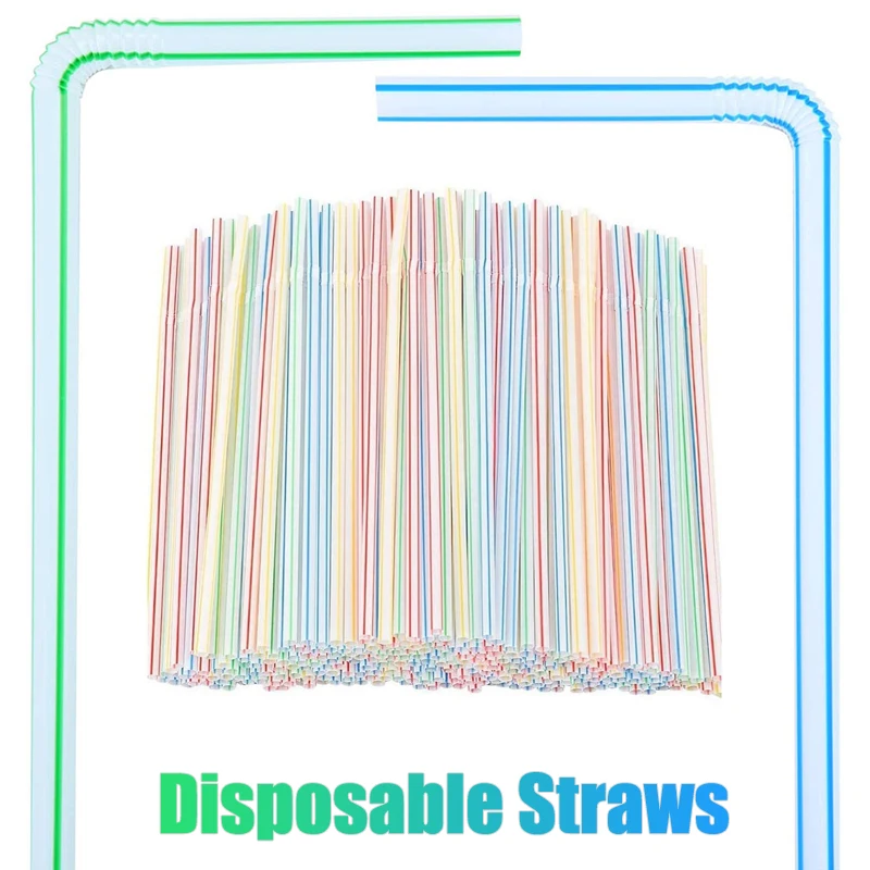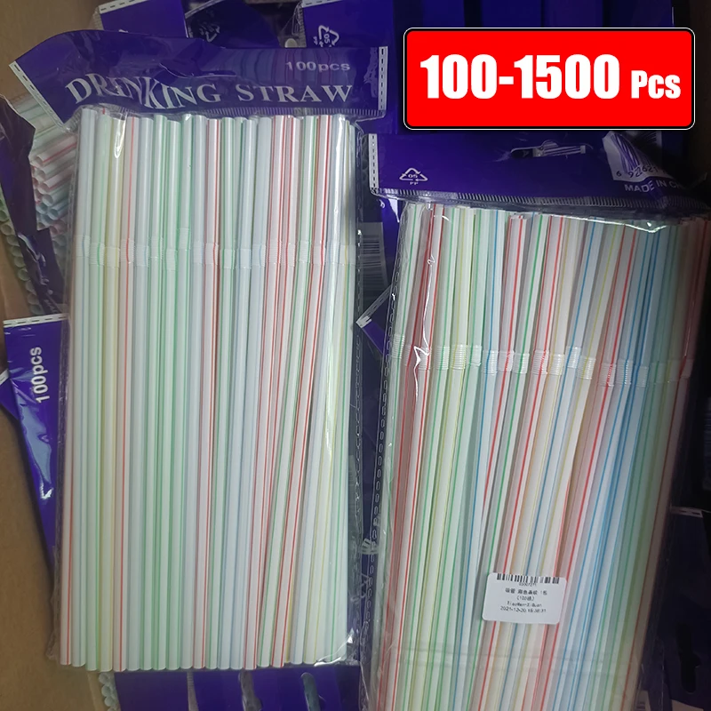 100-1500 шт., одноразовые Разноцветные полосатые трубочки для бара, вечевечерние, напитков, коктейлей