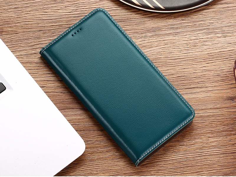Magnet Natural Genuine Leather Skin Flip Wallet Book Phone Case Cov...