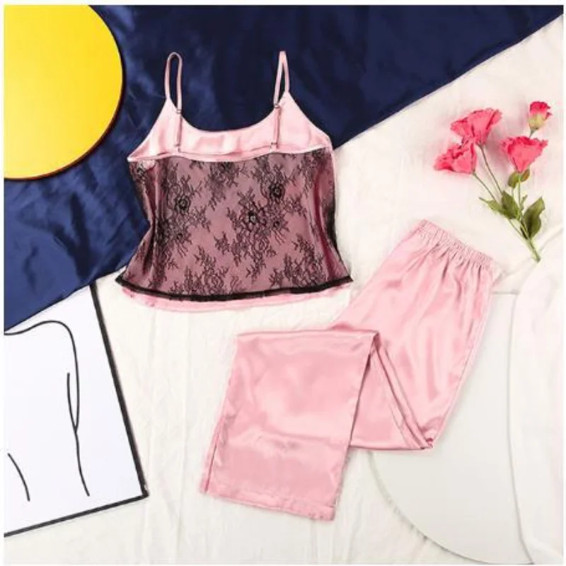 Сексуальные кружевные пижамы с открытой спиной, брюки на бретельках, костюм из двух предметов, ночное белье, интимное белье, домашняя одежда, ночное белье для женщин, Pj набор