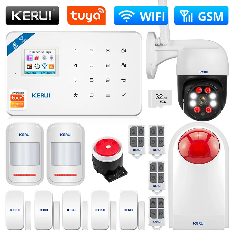 KERUI Tuya W181 смарт WIFI GSM охранная сигнализация Охранная работа для домашней безопасности детектор движения датчик дыма двери окна