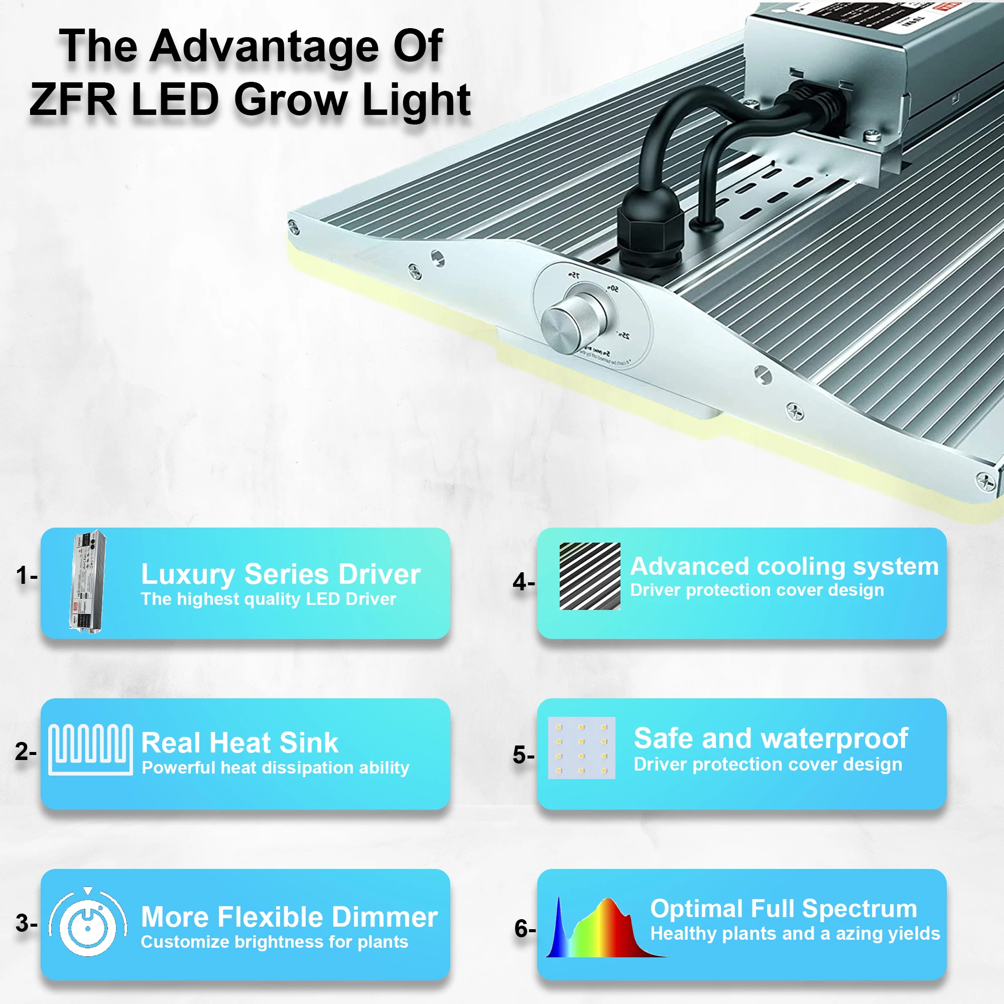 1 Подлинная Высокоэффективная Samsung LM301B и означает хороший драйвер, мы обещаем не использовать поддельный материал2 Последние достижения в области технологии светодиодный, Улучшенная система охлаждения с цветопередачей, высокая эффективность области охлаждения, чем другие, и многие другие дизайны наших улучшений3 ZFR светодиодный доступен с ± 2,9/j эффективность. Идеально подходит для установки в помещении, включая вертикальные многоэтажные сооружения, большие подвижные стенды, или даже садоводства с комнатными палатками или ограниченным количеством растений. В настоящее время более ±/J выход, чем у конкурентов