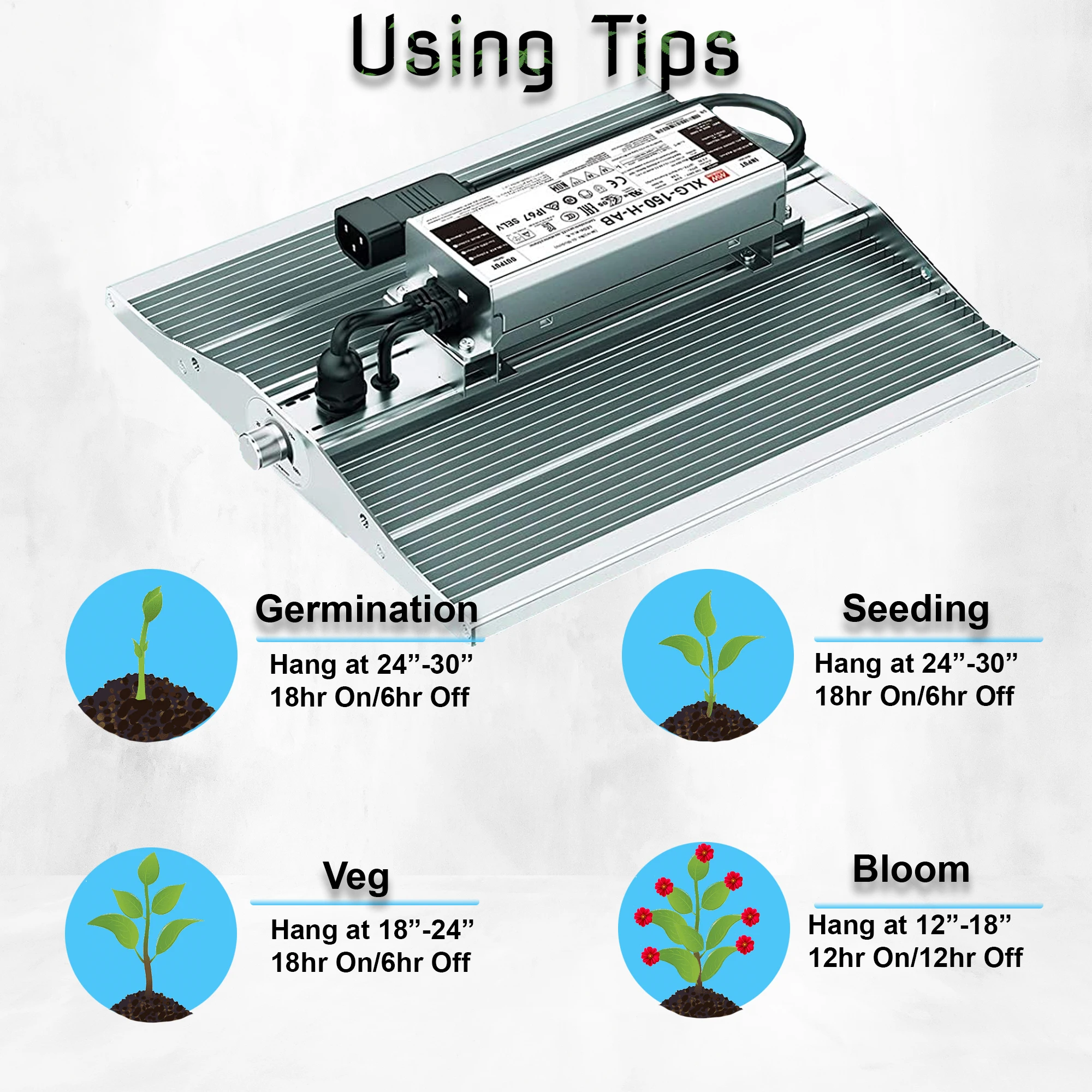 Рекомендуемый охват:Вегетативный охват при 18 ": 2.8x2.8ftОхват цветения при 14 ": 2.5x2.5ft.Площадь покрытия ядра: по сравнению с мощностью 150 ватт HPS при потреблении всего 105Ватт! Дважды эффективная зона покрытия, чем любой отражатель серии огней, ИзбегайтеЦепь ромашки, опасное первое и энергетическое перекрытие вызывает отходыЧастота: 50-60 ГцРасстояние от растения: Рассада: 60 см (23 ") Рост: 40-60 см(16 "- 23") цветок: 30-40 см (12 "-16")Драйвер: серия Mean Well HLGУгол светодиода: 120 °Б/у Чипы: 224 шт. SAMSUNG LEDsСрок службы: 100 000 ч в эксплуатации