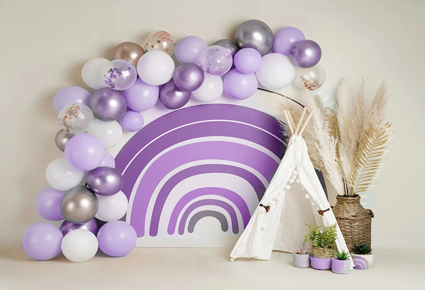 Фон для фотосъемки Mehefond в стиле бохо Радуга богемные девушки Фотофон фиолетовые воздушные шары торт