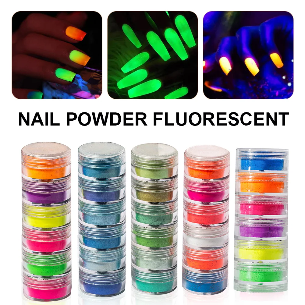 6 в 1 Неон фосфор пигмент порошковый флуоресцентный Блестящий акрил...