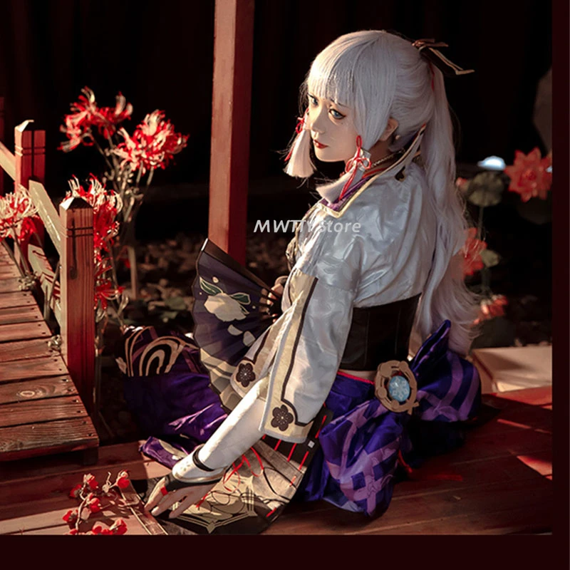 Костюм Kamisato Ayaka из аниме Genshin Impact Kamisato Ayaka, косплей, Униформа, искусственная кожа, карнавальный костюм на Хэллоуин