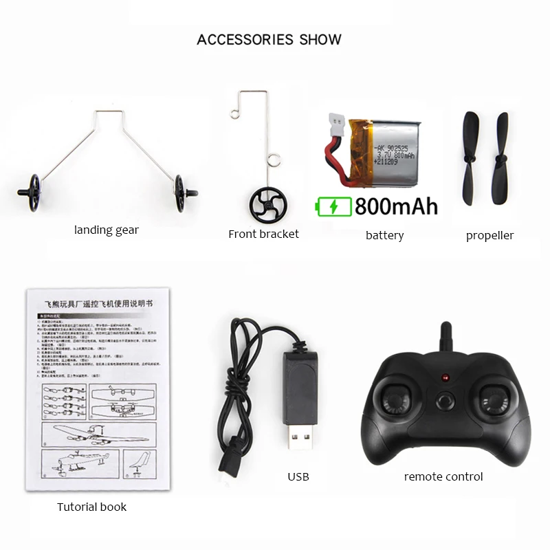 1 * RC самолет1 * пульт дистанционного управления1 * пара пропеллеров1 * Поролоновый клей1 * Зарядное устройство USB1 * руководство на английском языке
