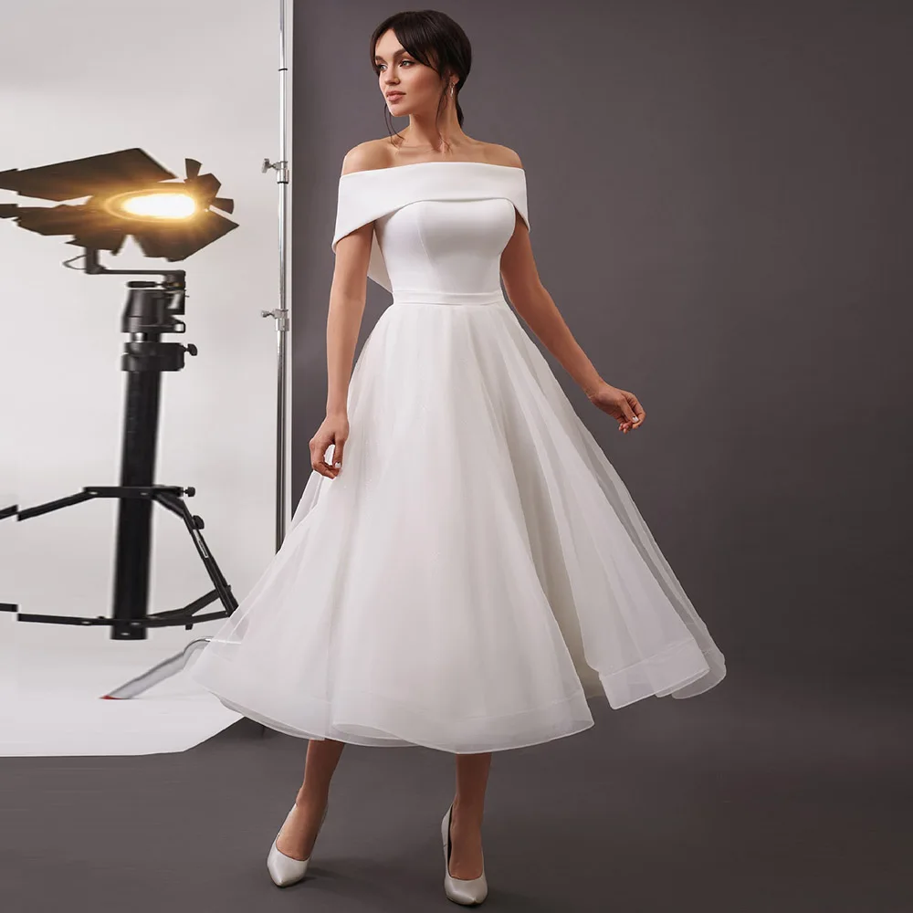 Женское свадебное платье до середины икры, белое простое платье нев...