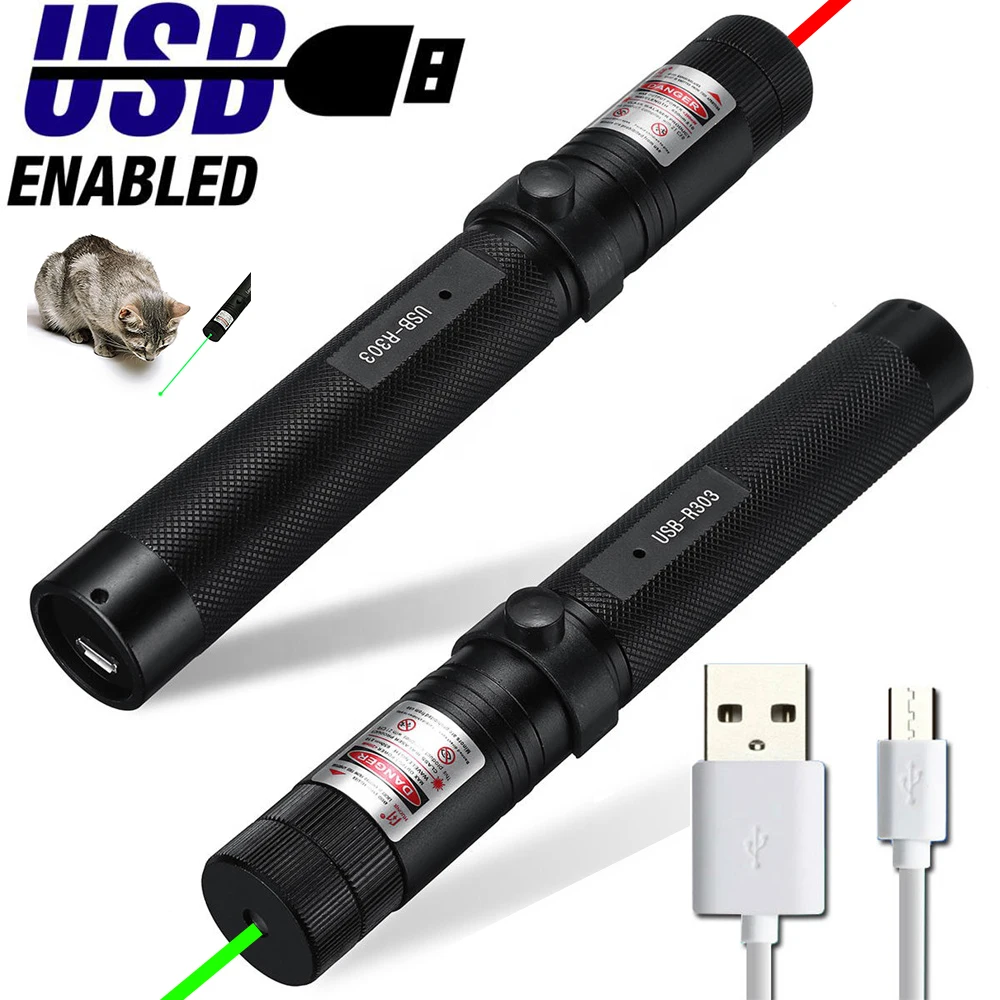 Лазерная указка высокой мощности, перезаряжаемый от USB зеленый лазер 303 с регулируемым фокусом, красныйфиолетовыйсинийзеленый лазер с супердальним излучением 8000 м