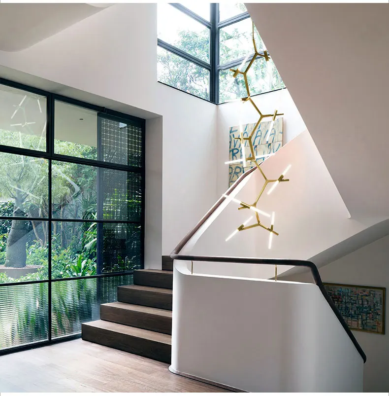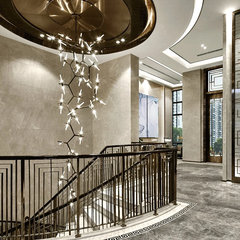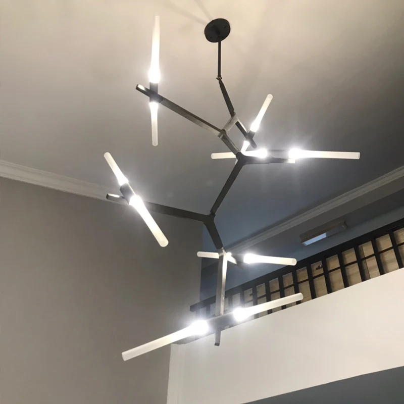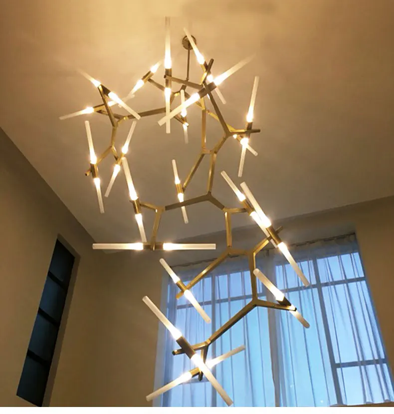 дизайнер современный люстра ветка вилла люстра вилла светодиодный дом освещение высотное вращательное многоканальная лестничная клетка крыши декоративная лампа блеск, вращающийся, шлифовальный стеклянный светильник