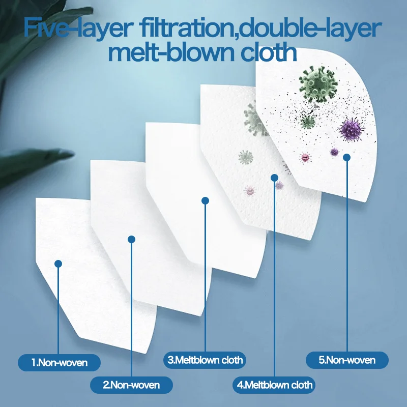 2. В случае образцов специфических 5 слоев из нетканого материала, дизайн, обеспечивает защиту от пыли, автомобильный отходящий газ, пыльцу и т. д.